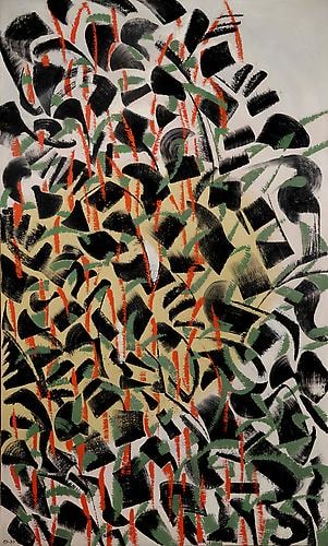 Six feet tall, sometimes sporting purple hair, Elise Seeds was proud of her eccentricities. Married twice, once to the impresario and writer Merle Armitage, she ultimately became known as simply, Elise. She was a true Renaissance woman. As a dancer, she studied under the great Isadora Duncan. As a comedienne and actress – her first movie was Love ‘Em and Leave ‘Em in 1926, and later served as W. C. Fields’ comic partner as in The Dentist of 1932. But art collectors know her as a serious painter of easel works, murals, and as a printmaker. In 1933 she made her artistic debut with some abstract lithographs shown at Stendahl Galleries in Los Angeles. Their non-objective subject matter may have been influenced by her Hollywood crowd, many of whom were artists, architects and musicians of modern persuasion who had fled the stifling policies of Hitler. Later she was paired in exhibits with local modernist greats Helen Lundeberg and Lorser Feitelson. While several Southern California women artists are known for their artistic experimentation, Seeds exceeded them by going beyond representationalism into pure color, shapes, and design and thus establishes herself as almost the first pure non-representational artist in Southern California.