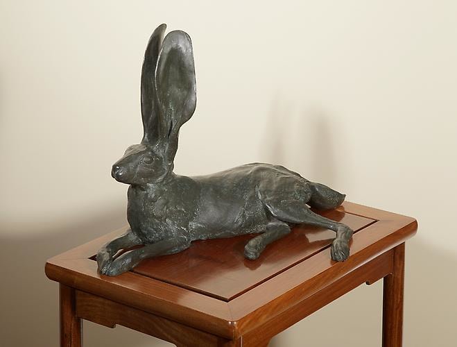 Blacktail Jackrabbit Reclining Cast Bronze Sculpture 13 x 11 x 20 inches Edition of 27 SOLD