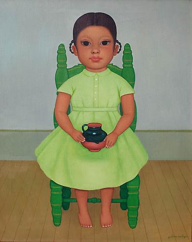Montoya was one of several Mexican artists who played a significant role in his own country’s art history when he espoused the new “Mexican” style, but is also hailed for his brief but significant work as a poster artist in Hollywood’s movie industry. A sensitive child, he began his art studies at the Academia de San Carlos when teachers such as Alfredo Ramos-Martinez were overturning European influence on Mexico’s culture and encouraging young artists to look at their own countrymen for subject matter. Montoya’s signature theme became the single child, centered in a vertical space, dressed in native clothing, and painted in bright, Latino colors. To a lesser extent he also created semi-abstracted still lifes that feature native Mexican foods, often breads and vegetables of his local area, and he also painted a series of gritty workers, very different in style, seemingly hewn into shape with a brush as if with an adz.